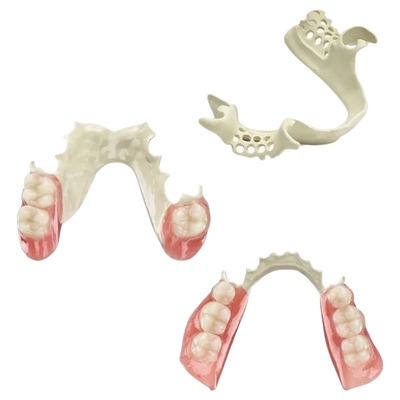 DuraCetal frames are 3d printed from metal-free material, ideal lightweight alternative to partial Cobalt Chrome denture frameworks.